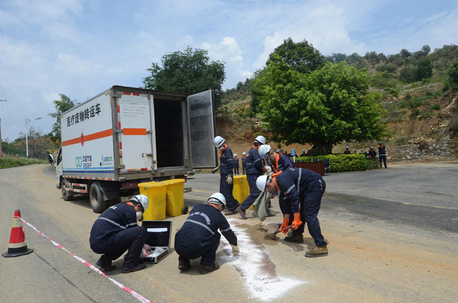 為進一步加強醫(yī)療廢物收運過程中道路運輸安全管理工作,有效應對道路運輸突發(fā)事件,更好保障職工和公眾的環(huán)境安全。2017年7月4日,中節(jié)能(攀枝花)清潔技術發(fā)展有限公司(以下簡稱攀枝花公司)在生產(chǎn)廠區(qū)組織開展道路運輸安全應急演練。市交通運輸管理部門領導現(xiàn)場觀摩。