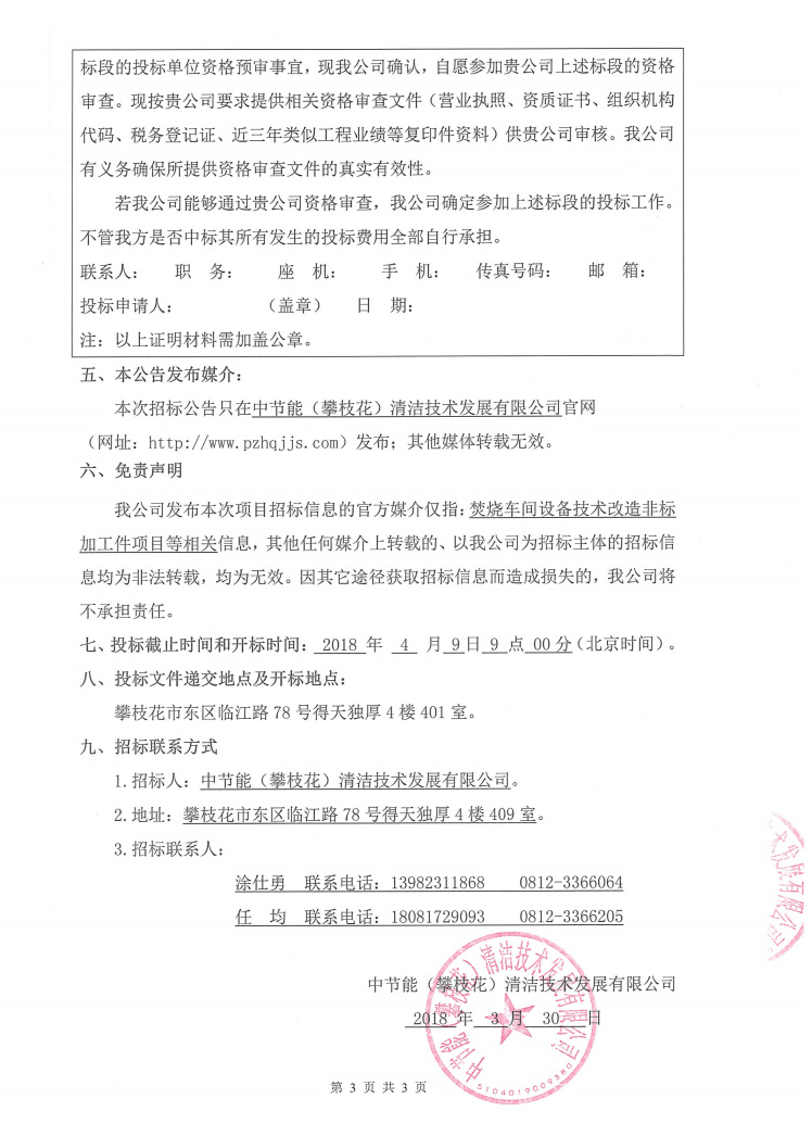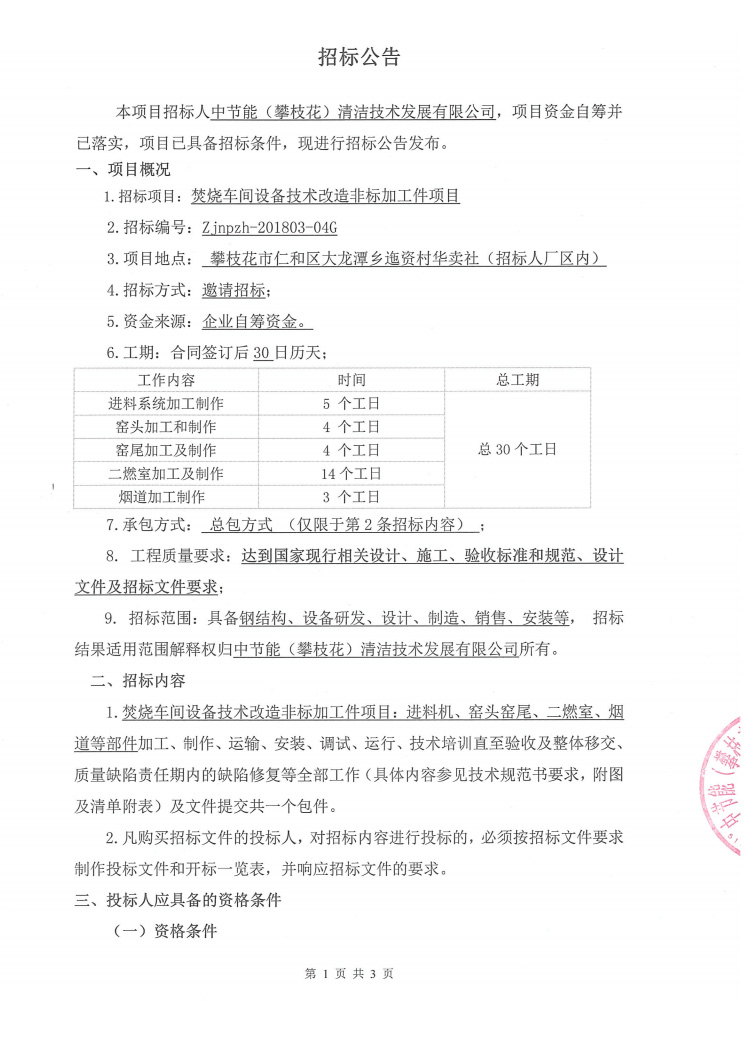 焚燒車(chē)間設(shè)備技術(shù)改造非標(biāo)加工件項(xiàng)目招標(biāo)公示