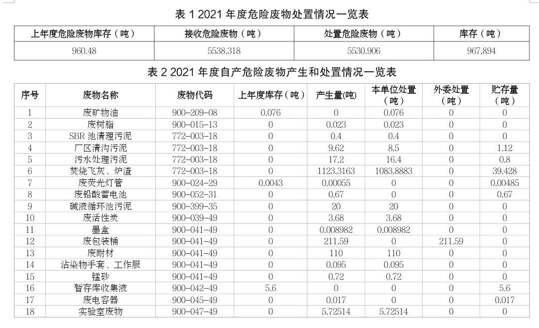 攀枝花市危險(xiǎn)廢物處置中心項(xiàng)目是國(guó)務(wù)院批準(zhǔn)的全國(guó)31個(gè)綜合危險(xiǎn)廢物處置中心建設(shè)項(xiàng)目之一,建設(shè)于攀枝花市仁和區(qū)大龍?zhí)多l(xiāng)拉鲊村,占地面積134.22畝,總投資約2億元,由中節(jié)能(攀枝花)清潔技術(shù)發(fā)展有限公司(以下簡(jiǎn)稱(chēng)“公司”)投資建設(shè)和運(yùn)營(yíng)管理。核準(zhǔn)處理原生廢物2.685萬(wàn)噸/年(含醫(yī)療廢物處置2000噸/年),其中:焚燒處理5000噸/年,物化處理1000噸/年,穩(wěn)定化固化填埋20850噸/年;可對(duì)除多氯(溴)聯(lián)苯、新化學(xué)物質(zhì)外的43大類(lèi),448項(xiàng)危險(xiǎn)廢物進(jìn)行安全處置,F(xiàn)將我公司2021年收處危險(xiǎn)廢物處置情況和自產(chǎn)危廢處置情況公示如下: