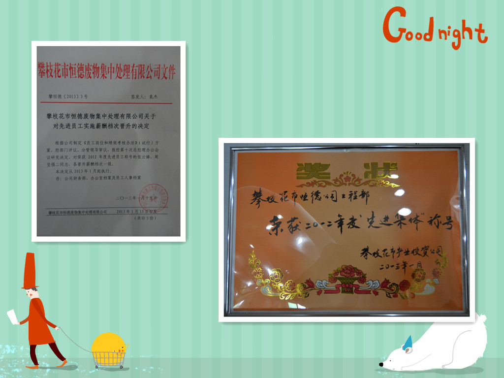 2012年12月公司由袁總帶隊(duì),前往北京參加環(huán)保部舉辦的危險(xiǎn)廢物經(jīng)營單位培訓(xùn)班,一行四人考試成績?yōu)閮?yōu),均獲得環(huán)境保護(hù)部固體廢物管理中心頒發(fā)的證書。
