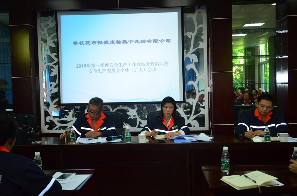 2016年11月10日下午,攀枝花市恒德廢物集中處理有限公司召開了第三季度安全生產(chǎn)工作總結(jié)會暨第四次安委會(擴(kuò)大)會議,公司安委會成員和全體員工參加會議。 會議學(xué)習(xí)了中環(huán)集團(tuán)公司鄭朝輝董事長關(guān)于“中國環(huán)保